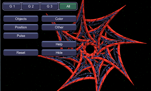 Ellipse lets you create colorful 3d arrangements and then animate them. Choose your shapes, colors, designs and animations to create amazing and original visual masterpieces. With plenty of options, Ellipse gives you hours of creative fun. - Works great with Google Cardboard and lets you fly around and through your arrangement in amazing 3D. - When you've made a beautiful arrangement, multiply the objects and fill the screen or use kaleidoscope mode to see it in a new light. - Create up to three groups of objects that can be individually colored and animated. - Change and color the backgrounds - Make the shapes move smoothly around each other or make them dance to a beat. Contains no ads.